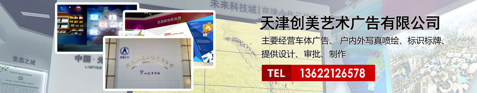 天津創(chuàng)美藝術(shù)廣告有限公司主要經(jīng)營(yíng)車體廣告、 戶內(nèi)外寫(xiě)真噴繪、標(biāo)識(shí)標(biāo)牌、提供設(shè)計(jì)、審批、制作、發(fā)布的服務(wù)。